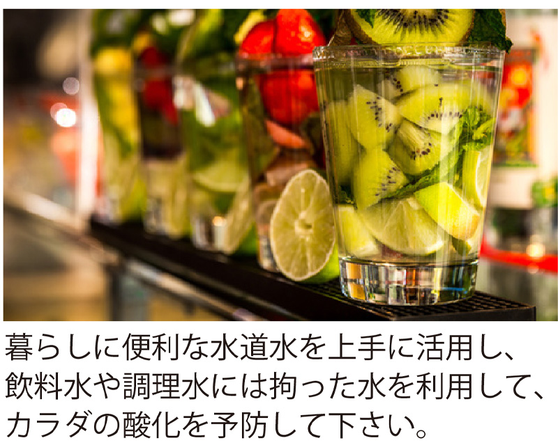 大切なのは飲用・調理する前にどのように濾過や中和してカラダに有益な水にするかです。