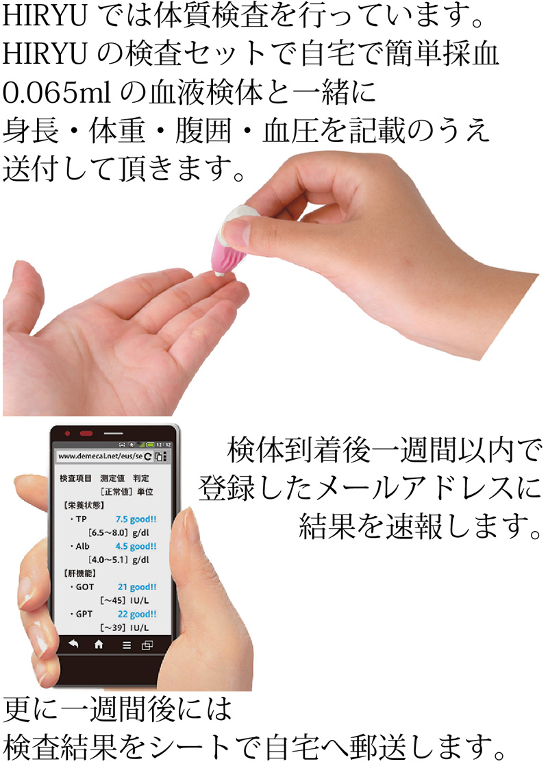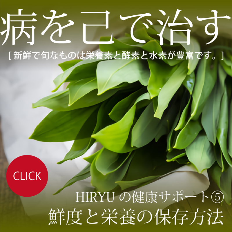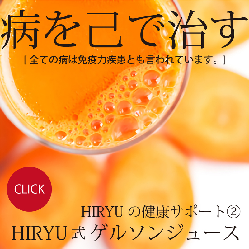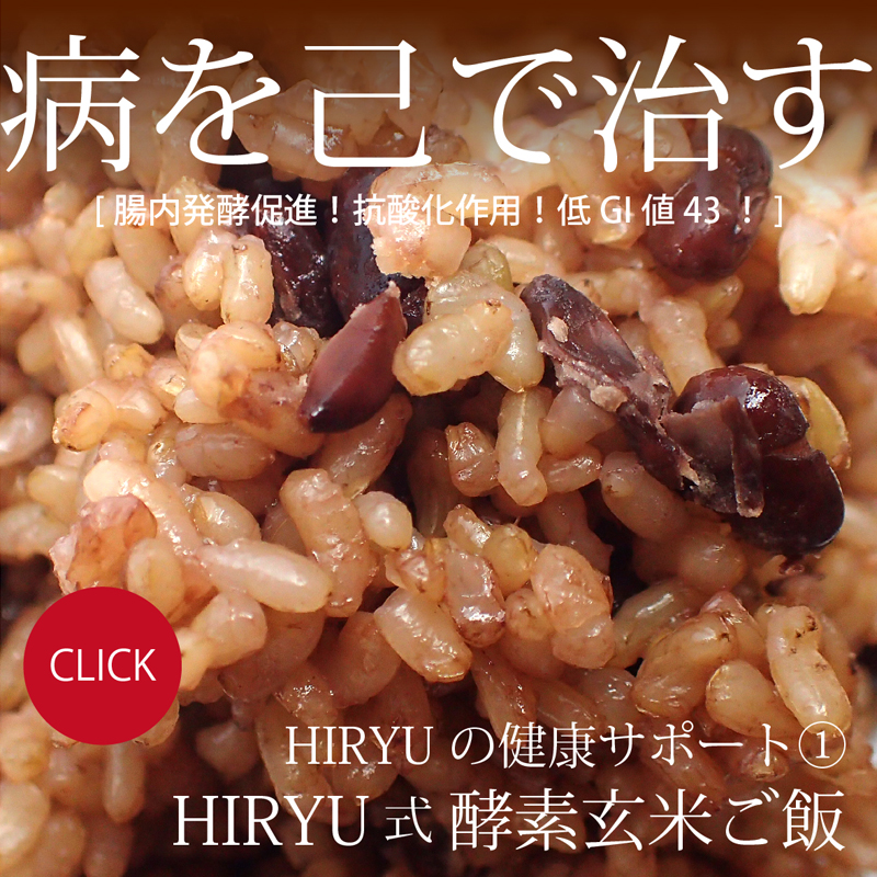2018年4月にHIRYU代表が右手薬指と小指を骨折した際、病院では麻酔を含めた一切の薬を使わず、整復とギブスのみの治療で済ませ、病院からは牛乳を飲んでカルシウムを摂るように勧められましたが、牛乳よりもカルシウム含有量の多いコマツナ(野菜で最もカルシウムが多い)を多くした酵素玄米菜食で完治させました。